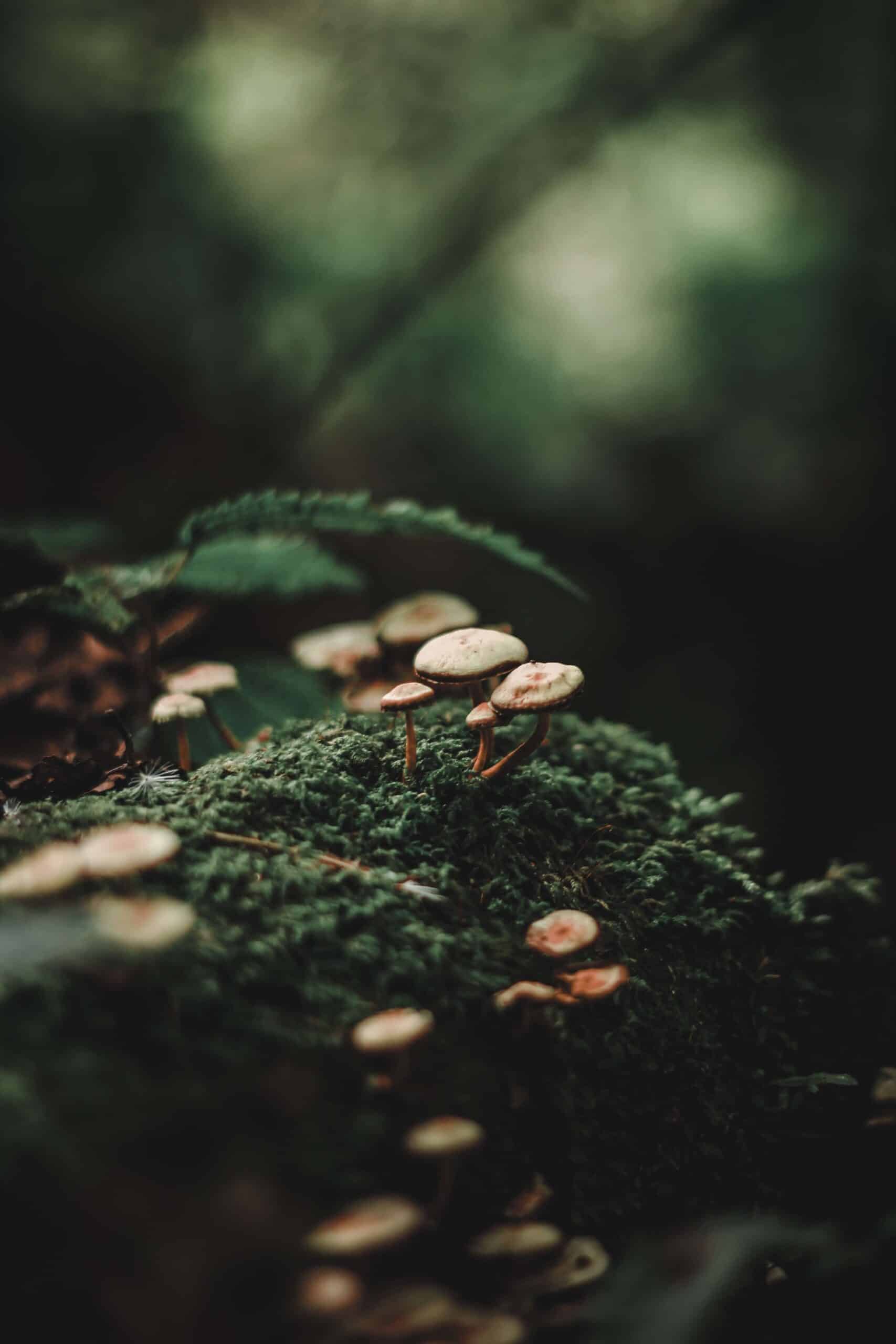 Mushroom spore print in a gradient of teal, mossy green, and pink with the words Automate with heart written around it twice